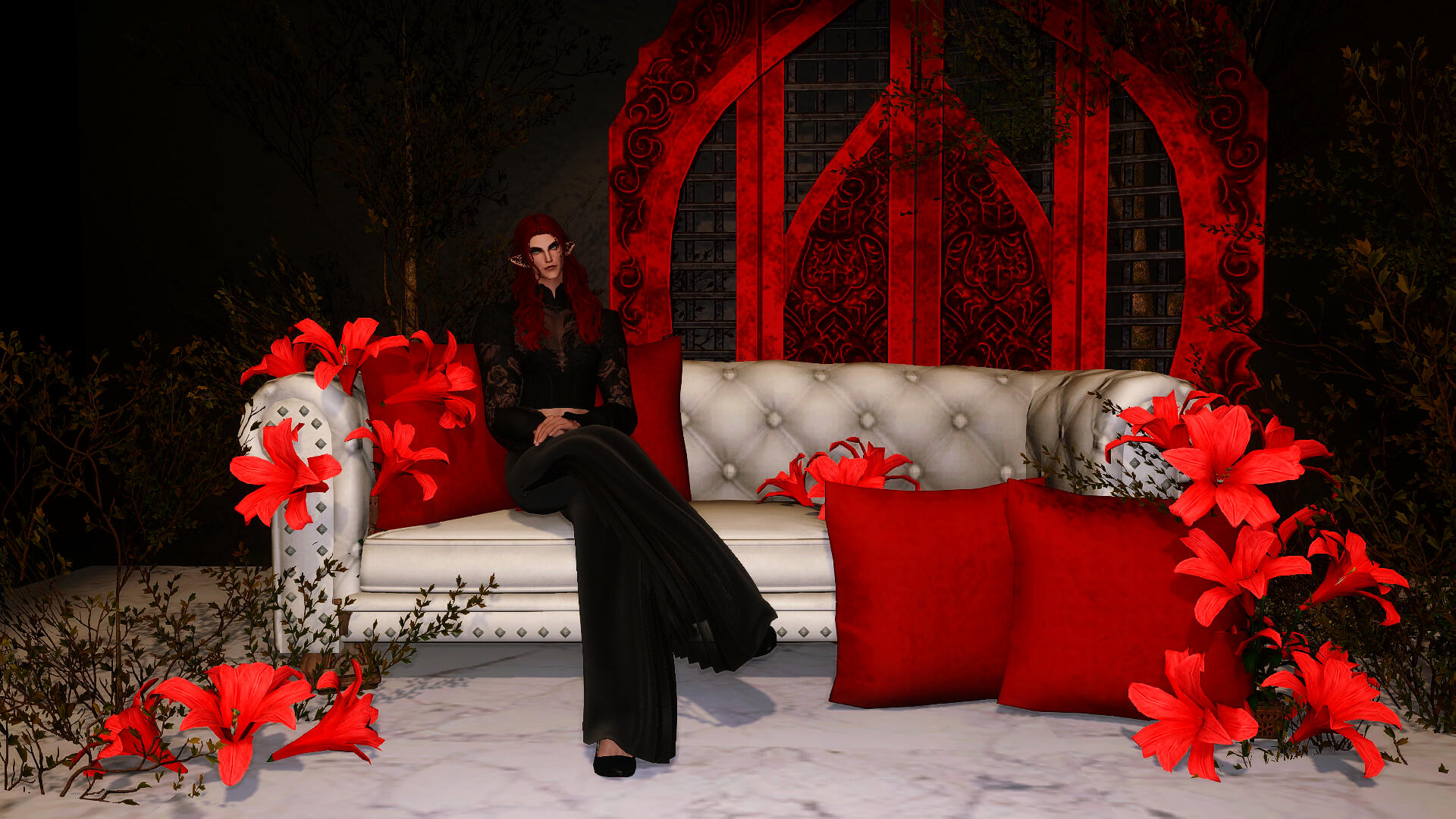 Demeanor Posh playboy and dedicated sybarite, Darce has been the source of wild rumor and scandal among the ton in Ishgard for years, with no sign of settling down in accordance to his father's wishes. Elegant and flirty, he is quick to make friends and attract lovers, though he has a bad habit of leaving behind a trail of broken hearts. Though his manner is carefully cultivated to give the impression of just another debonaire hedonist, if one pays close enough attention, there does exist a note of unmistakable, shrewd intellect in the nobleman's sea-green eyes - possibly leading one to question what else may lurk beneath the surface.His own signature perfume: Scandal à Minuit. A scent built around hedonism, aristocratic refinement, and illicit freedom, it opens with the polished civility expected of high birth, then unfurls into something darker, lush, and defiantly unrestrained - whispers of secret liaisons, debauched bacchanals, and velvet decadence.It begins with elegant top notes of bergamot, cardamom and pear blossom, soon giving way to sybaritic, mischievous heart notes of black narcissus, aged cognac and plum resin. Finally, it leaves a rebellious, memorable echo with base notes of indulgent oud, smoked oak and animalic grey musk tincture. Truly an unforgettable olfactory experience.
